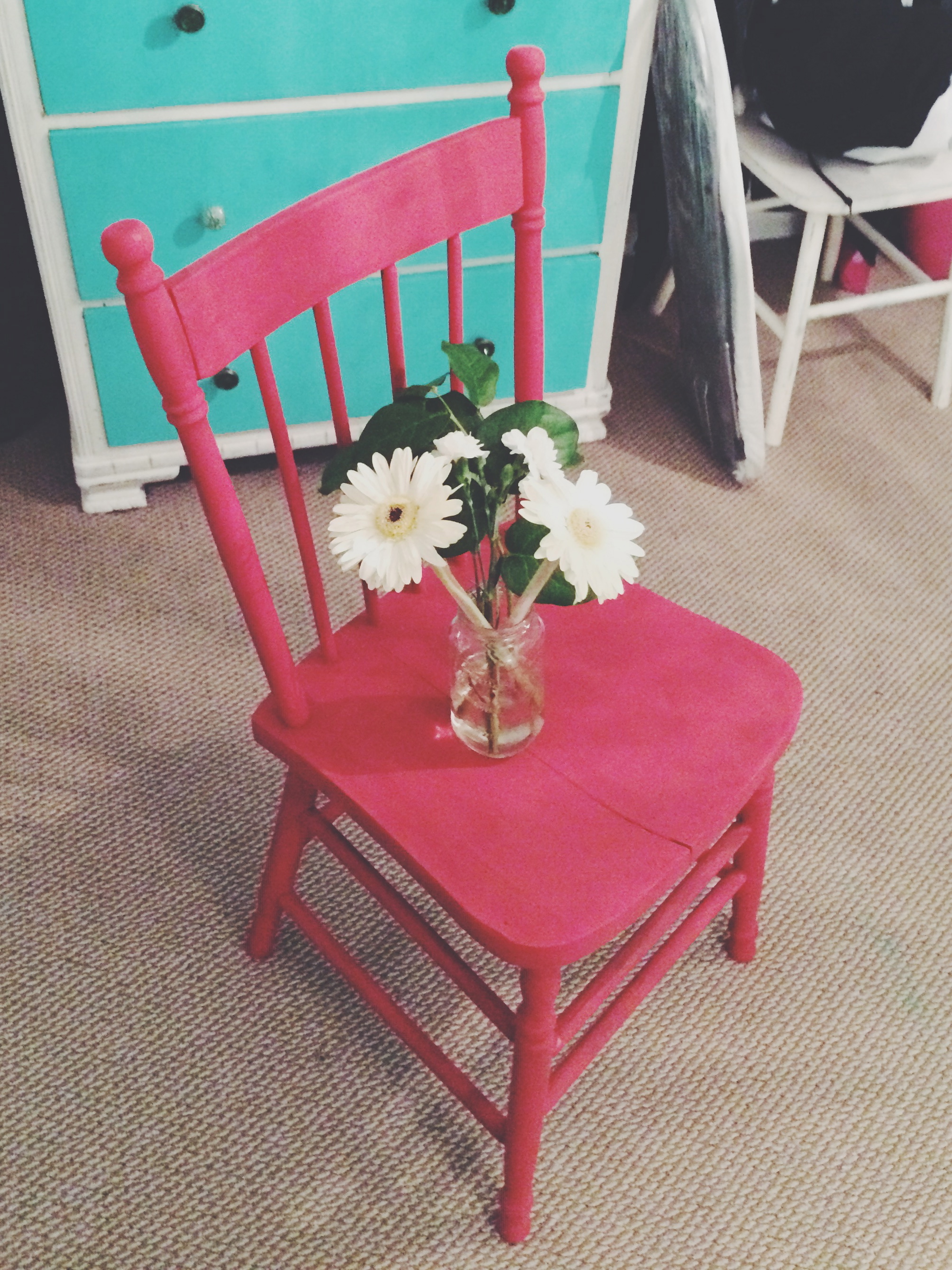 One of my most recent projects was my desk. I had been wanting a desk for so long so I could escape the terrible habit of falling asleep working at my computer in bed. I don’t have a ton of space in my room so I needed something small. Salina found this desk for me from a local second hand store down in White Rock, texted me a photo and I thought it was perfect. I bought the paint for the chair and desk and crystal knobs from Cottage Paint on East Beach in White Rock, BC.